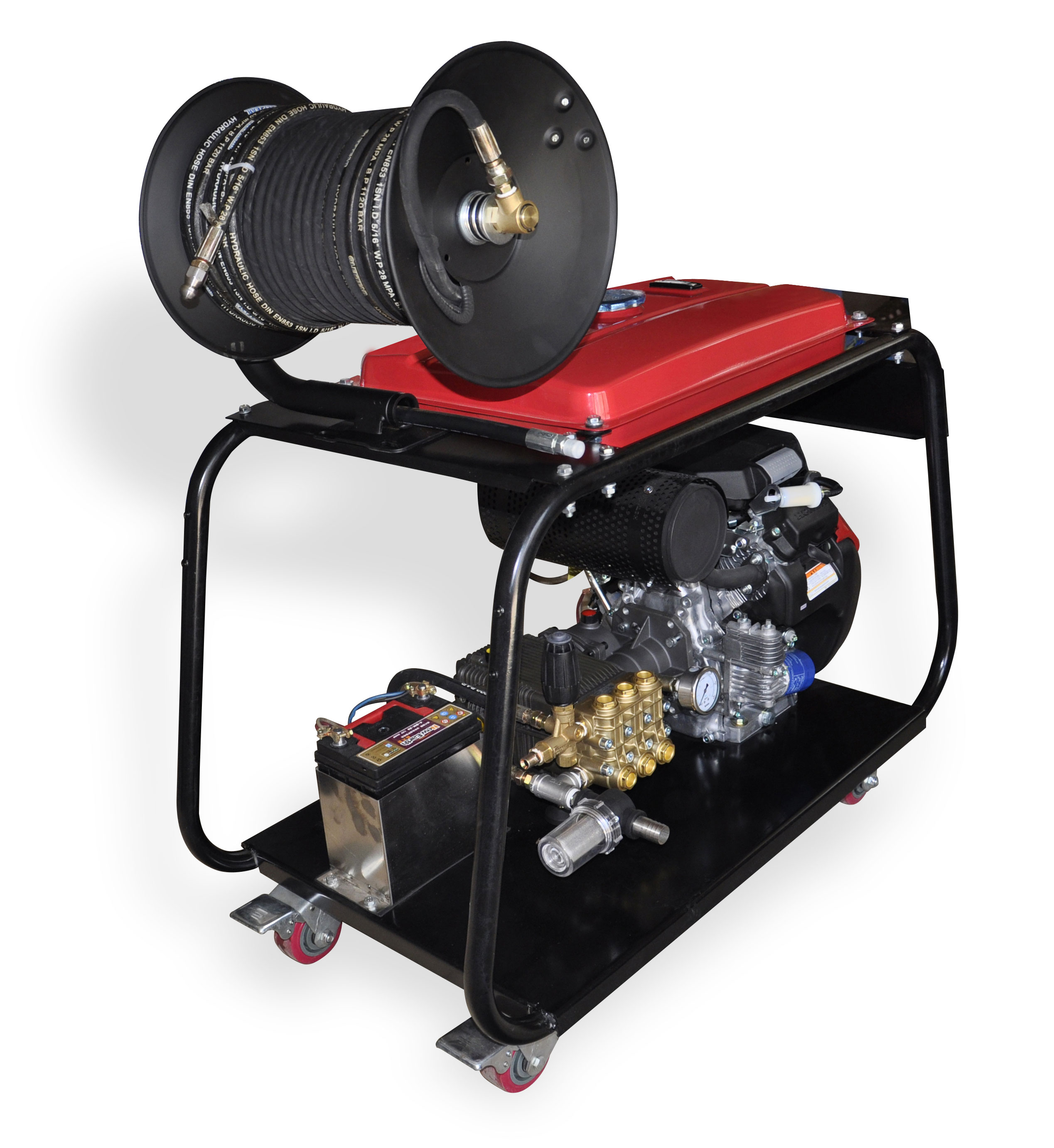 高壓疏通機原理:利用汽油機、柴油機或者電機通過傳動軸帶動柱塞泵把水加壓到幾十公斤,幾百公斤甚至上千公斤。通過特殊的噴頭噴出,打擊在管道內壁上,使管道內壁上的污垢、油污、皂化物、料垢等清洗下來。再通過噴射在管道里激流水把被清洗物沖出管外,達到徹底清洗管道目的。